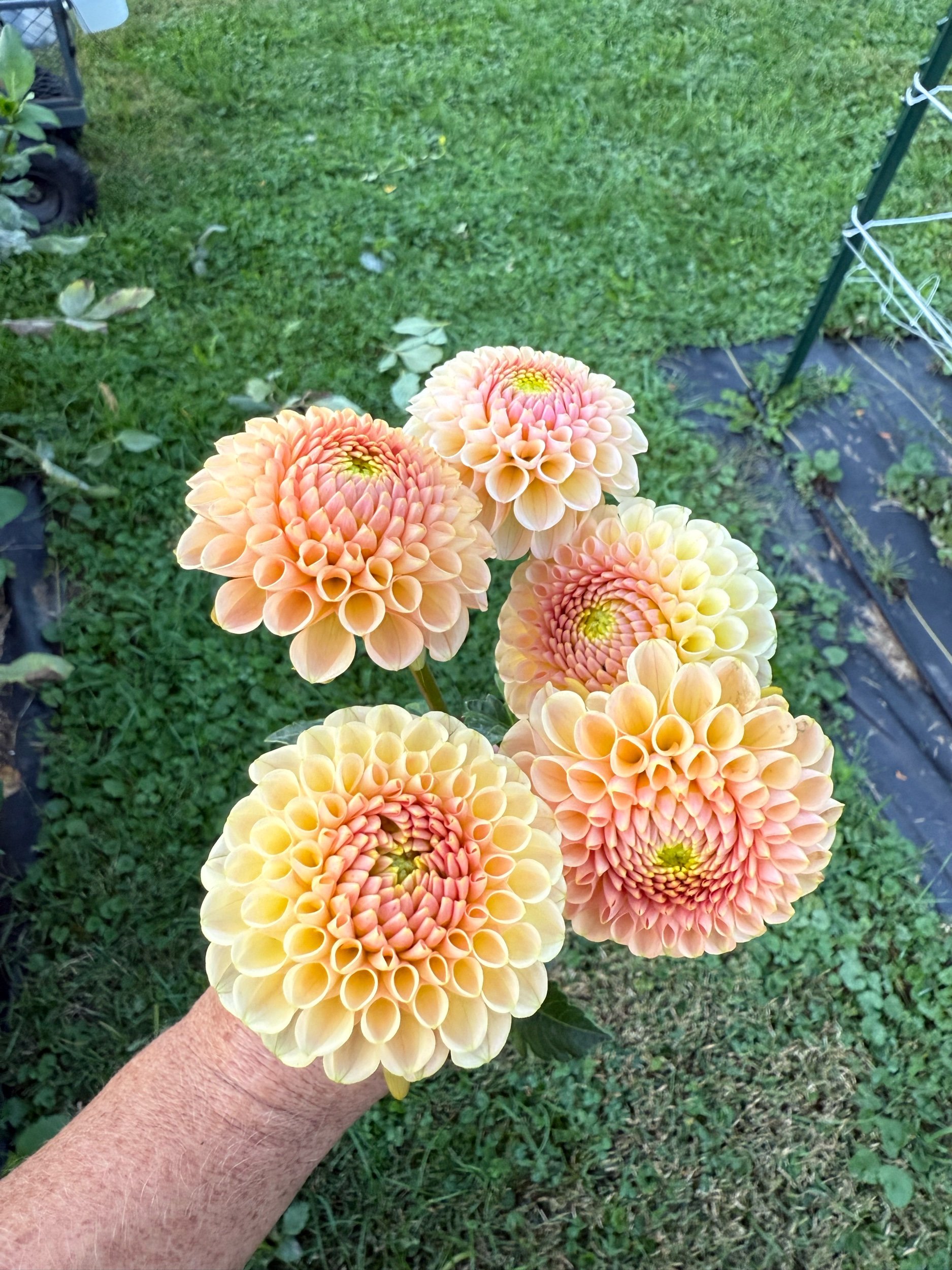 KA’s ®️ Honeycomb is the cutest peachy mini ball dahlia that has consistent blooms on long strong stems. KA’s ®️ Hineycomb is a 2025 introduction from Kristine Albrecht of Santa Cruz Dahlias.