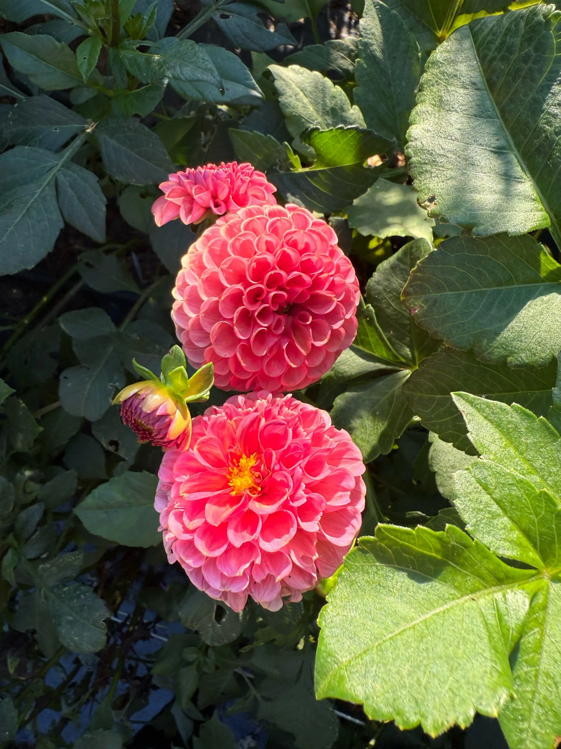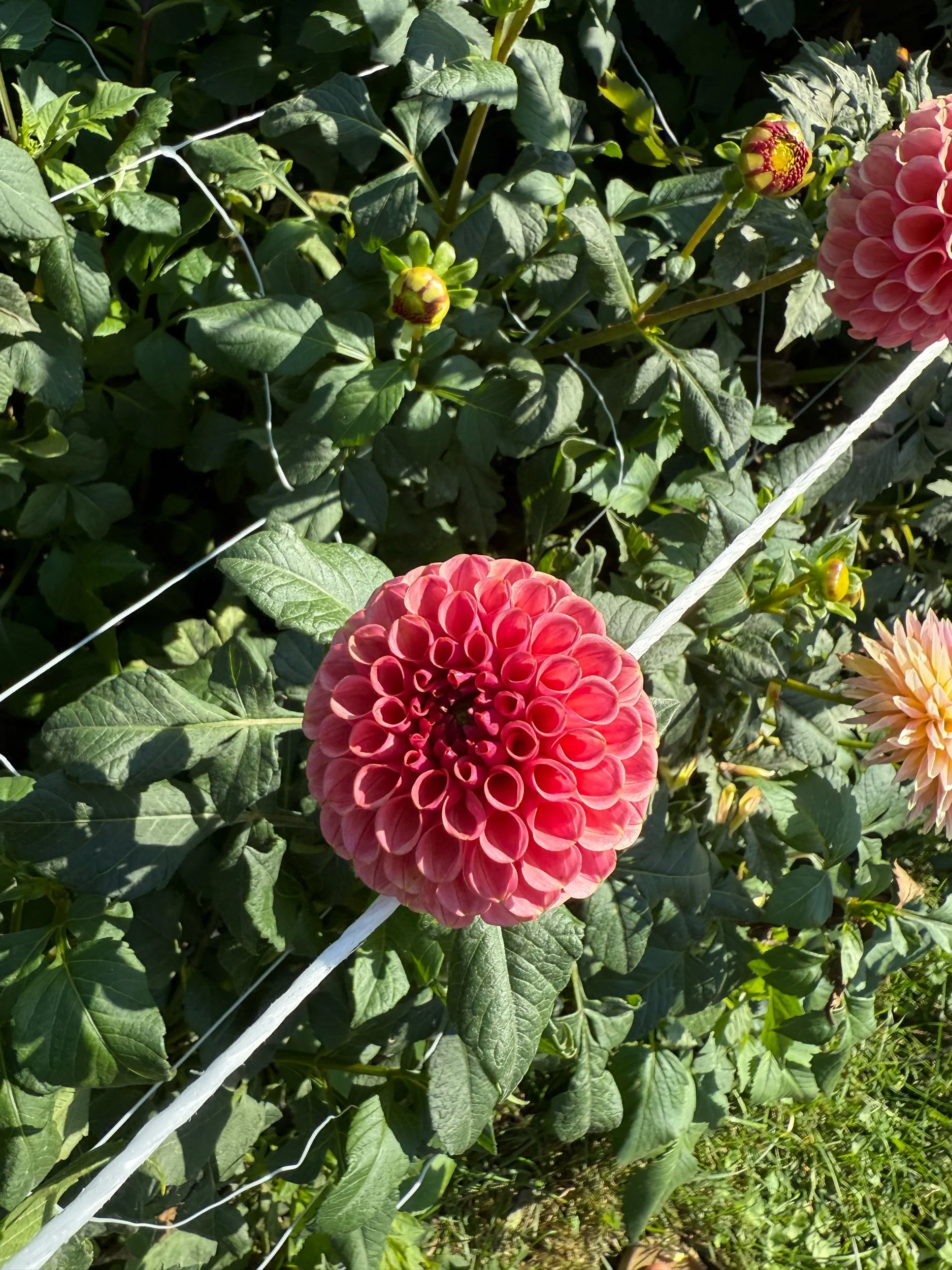 Ferncliff Rusty dahlia is a reddish-orange ball dahlia. It has some darker tones and is a prolific bloomer, it was a must grow for our rustic vibed wraps and later season “fall color blooms.”