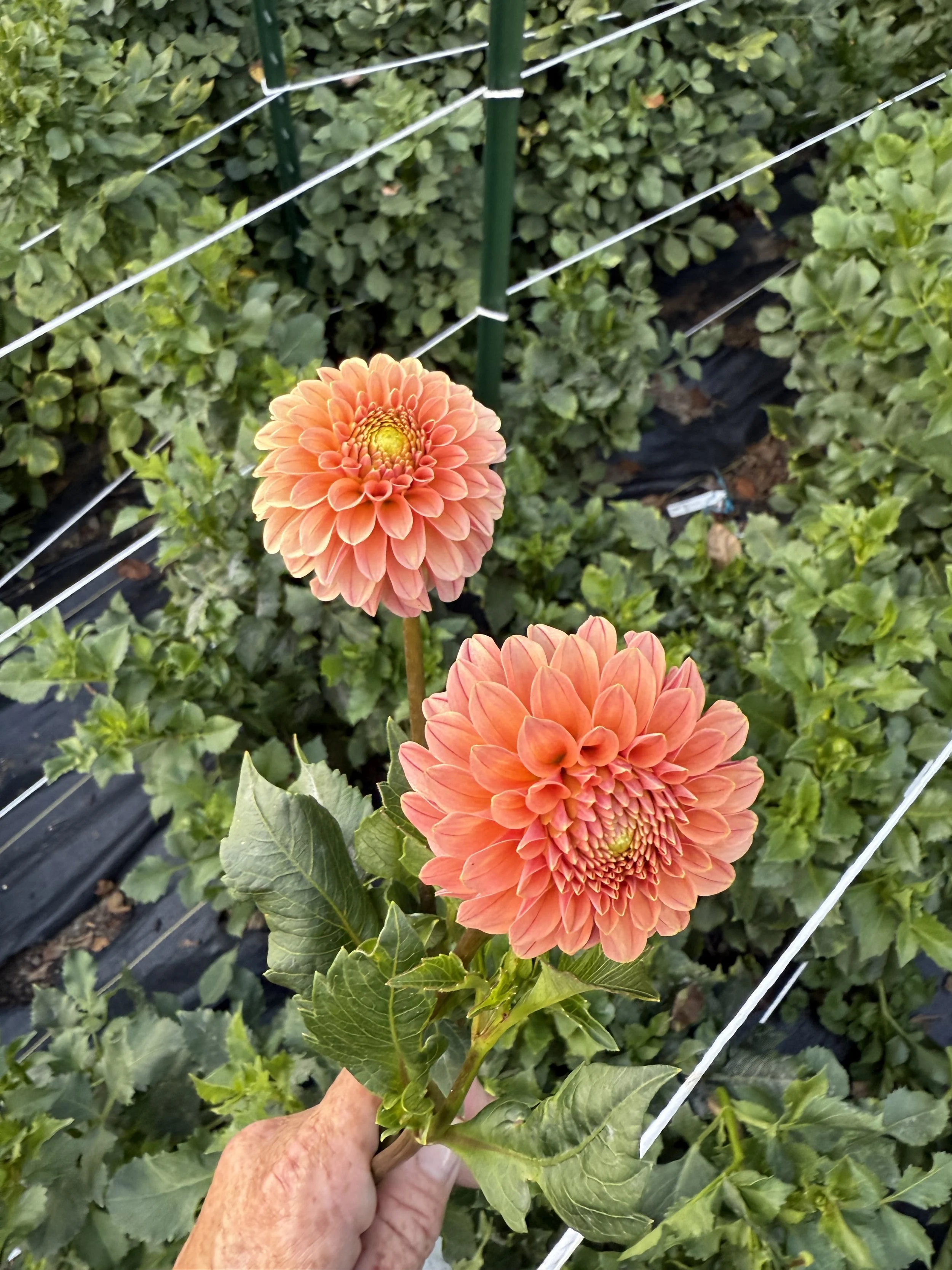 Rose Tuscano is a 3-4 inch bloom with an apricots peach color and strong stems. It’s a color that goes with so many dahlias.